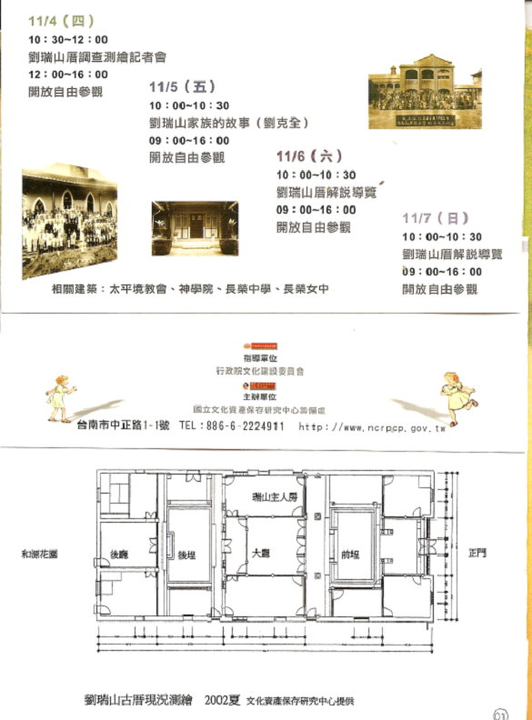 台灣府城府東巷劉厝屋主劉瑞山,曾與弟劉錫五在此厝合開「和源」號,兄弟分開後,此厝就歸劉瑞山。為配合國立文化資產保存研究中心台北市籌備處,2004年11月4日舉辦「台南市府東巷劉瑞山厝調查測繣發表會」,劉厝開放三天。