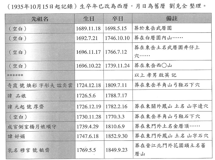 《劉的族譜》世系 影印