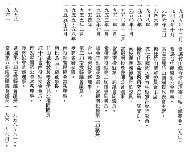 《楊昭璧愛的足跡》楊貞惠撰 曹永洋校訂, 臺中市 楊貞惠 1998年10月 p.196-198。附 圖像 楊昭璧晚年肖像。 楊昭璧(原名招璧,二次世界大戰後改為昭璧),1908年8月25日生於台南安順,是楊真長老(1871-1927)的次男,1915年喪毋林汶,1916年就讀安順公學校,1923年考入台南二中,1928年進台北醫���專門學校,1931年與李美治結婚.,1932年��北醫專畢業...........1964年6月南投縣縣長, 1966年11月6日病逝台北市。