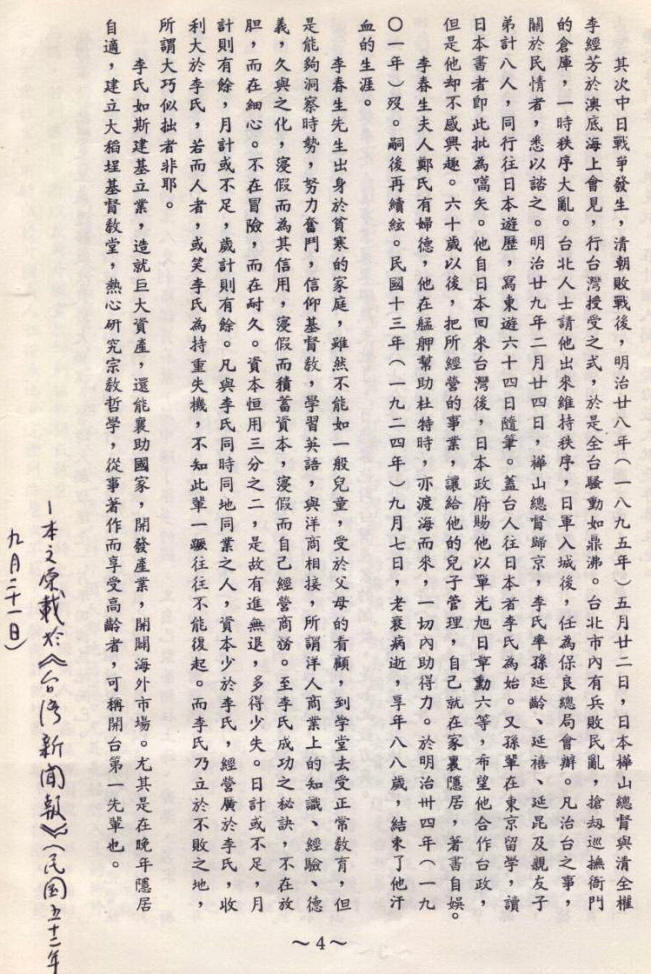 杜聰明撰《台灣新聞報》民國52年(1963年) 9月21日(提供者陳俊宏)