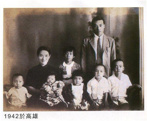 李春祥家族藏 1942年撮於高雄。李春祥 (1910-1988)和黃瑞月,育4女3男,依序是長李秀柳、長男李豐明 (1934-2005)、次男李豐仁、次女李秀卿、三男李豐隆、三女李秀瑛(夭折)、四女李秀麗。李春祥撰《玉谷回聲--李春祥的憶錄》2002年 68頁,《李氏台語辭典》2001年 李豐明出版 932 頁。