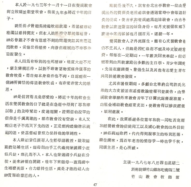 雙溪教會牧會簡記 |