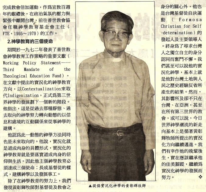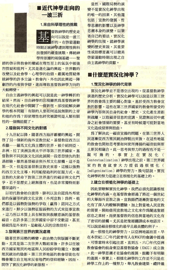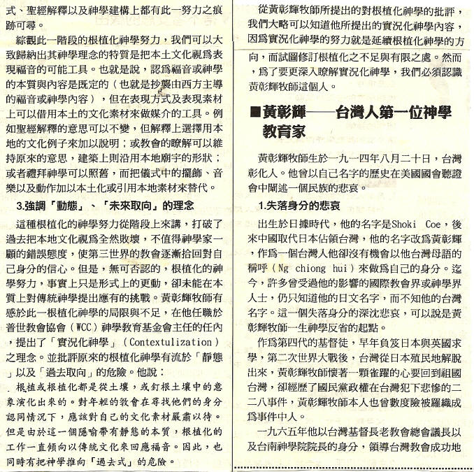黃伯和撰 《台灣教會公報》 2394期 1998年1月18日 p.10-11 本土神學系列