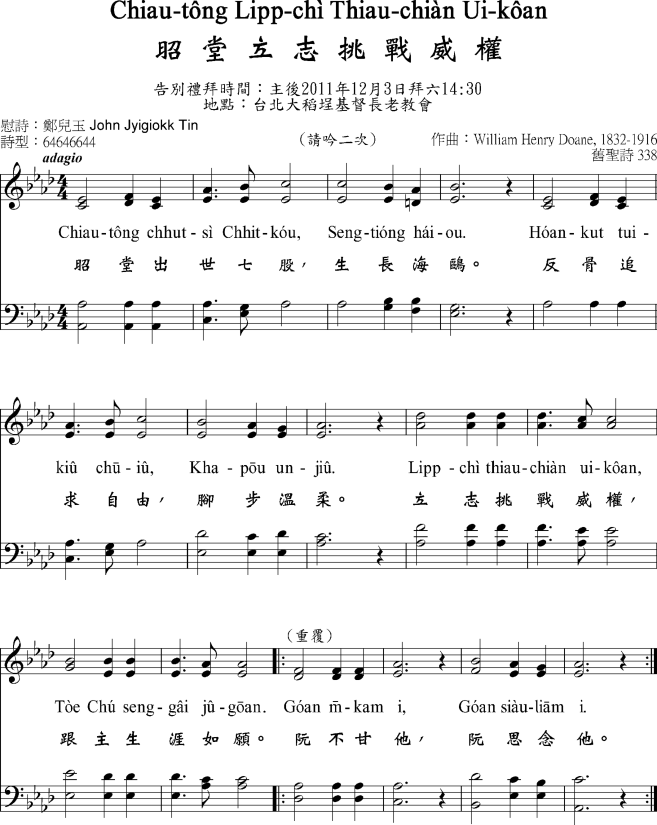 鄭兒玉作詩 黃昭堂,2011年11月17日去世,告別禮拜於12月3日假台北大稻埕基督長老教會舉行。詩句:昭堂出世七股,生長海鷗。反骨追求自由,腳步溫柔。立志挑戰威權 ,跟主生涯如願。阮不甘他,阮思念他。吟二次。