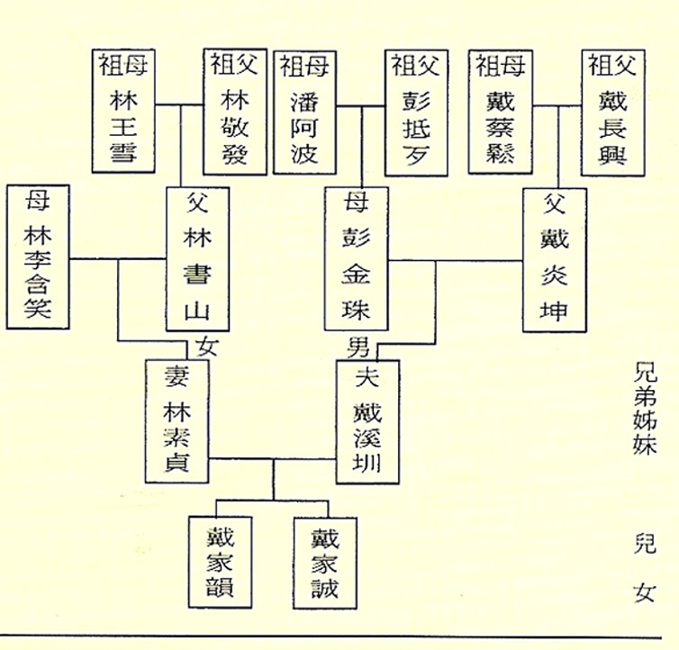 戴溪圳的父親為戴炎坤,祖父為戴長興,而母親為彭金珠。