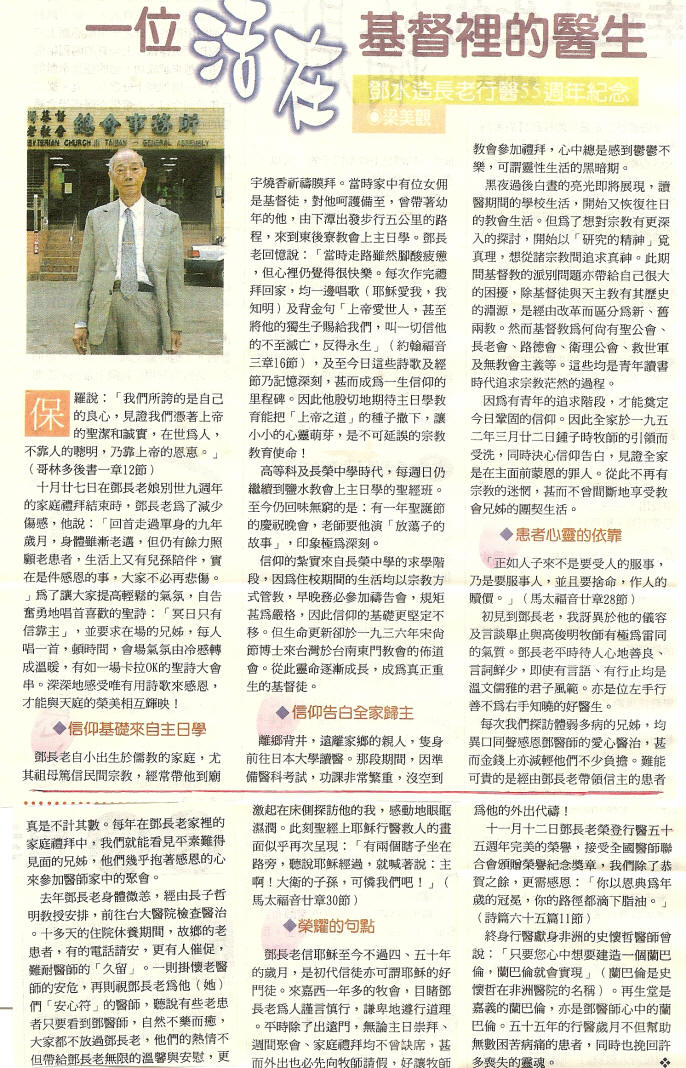 梁美觀撰 《台灣教會公報》2491期 1999年11月28日 p.20
