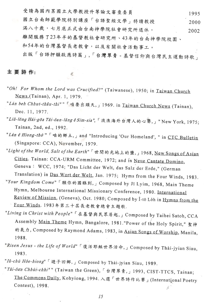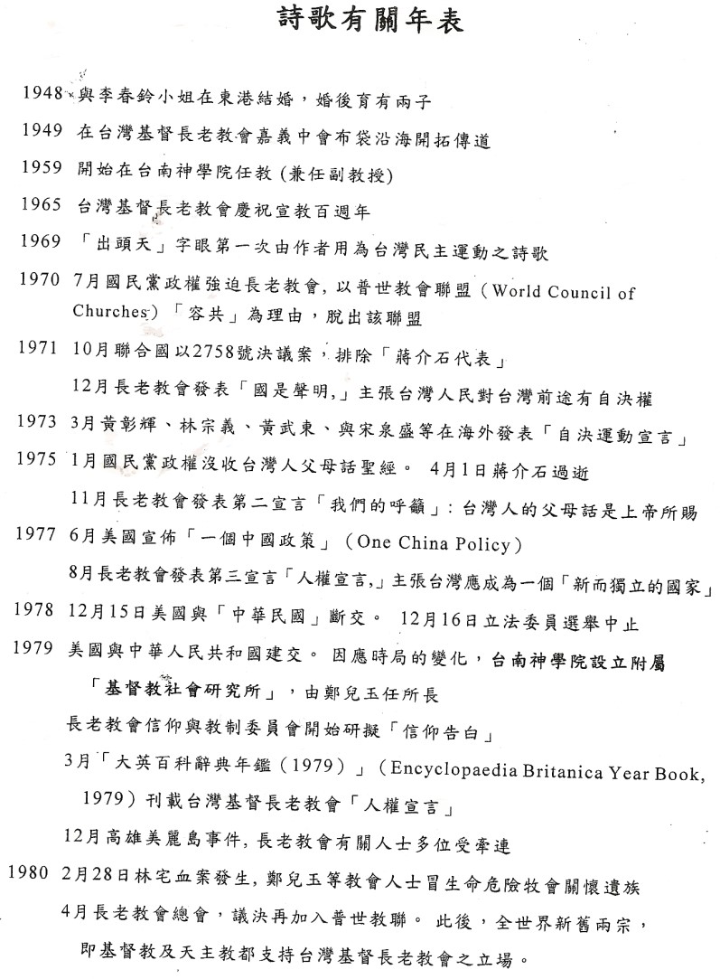 載於鄭兒玉作.吳仁瑟編 《台灣翠青-基督信仰與台灣民主運動詩歌》 2002年 望春風出版社 p.14-17。