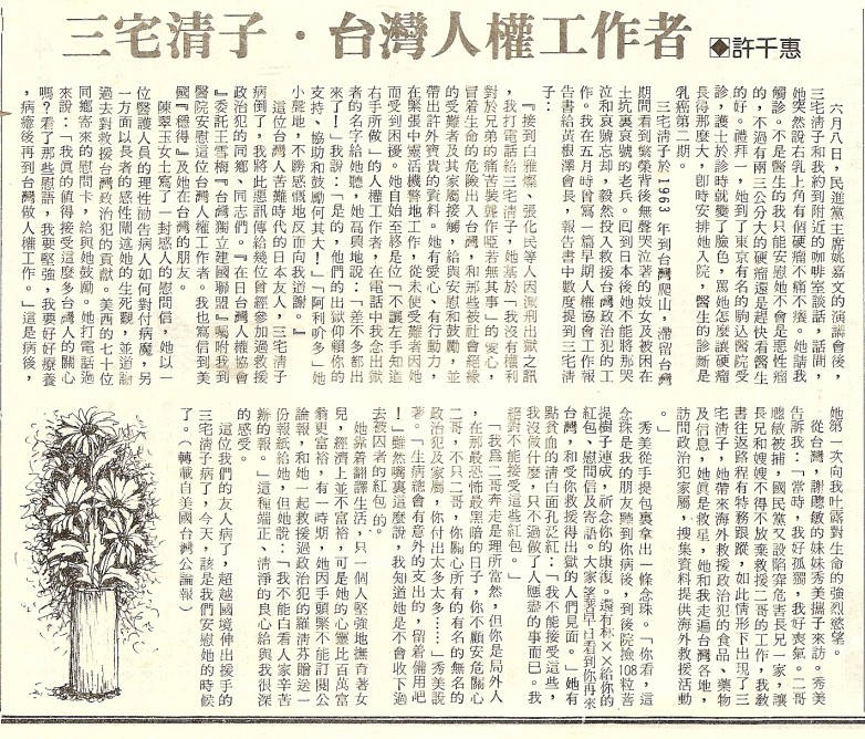許千惠 《台灣教會公報》 1904期 1988年8月28日 p.10 原載美國《台灣公論報》。