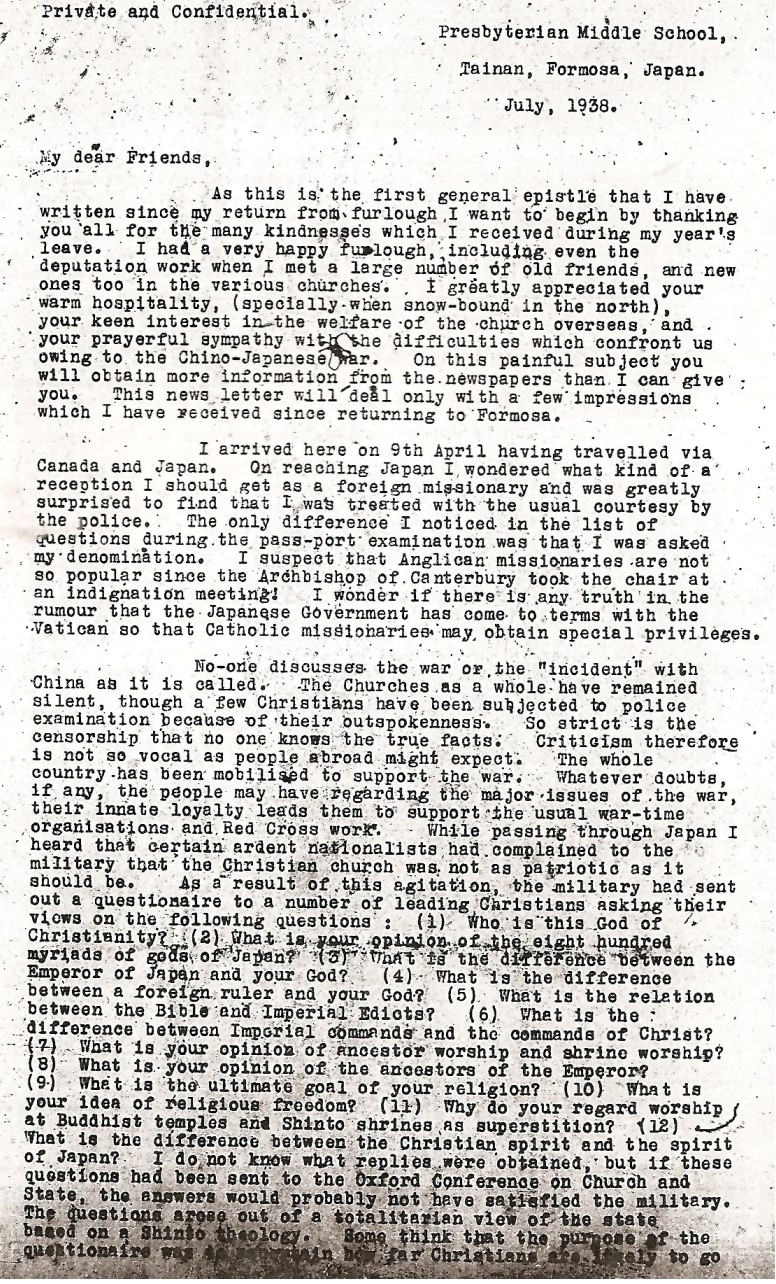 BAND’S LETTER TO FRIENDS, JULY 1938 |