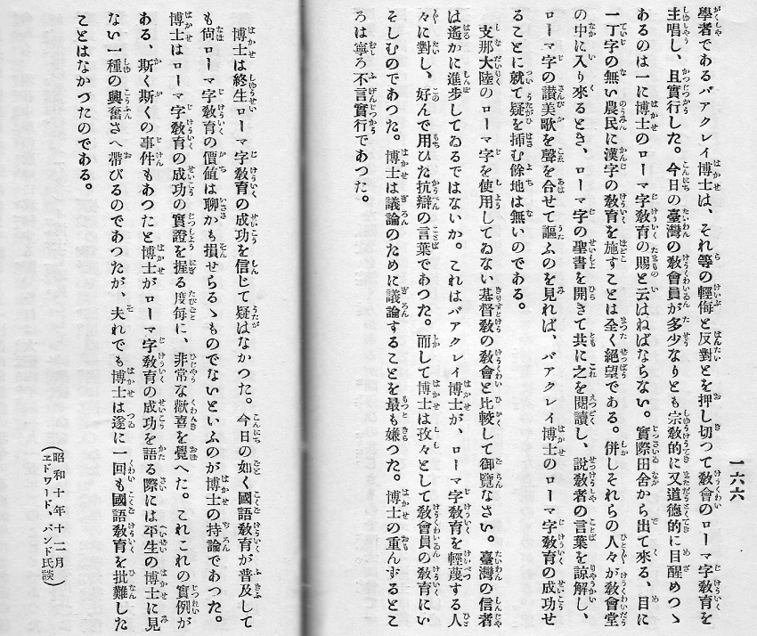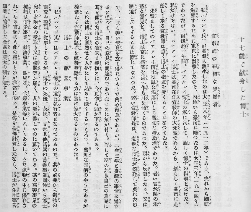 Barnd,Edward (萬榮華) 1935年12月談 「 十七歲で獻身した博士」 井川直衛著 《バアクレイの面影》台南 基督教真理社 1936年 p.156- 167 日文 。[ Edward Band, Barclay of Formosa, (Tokyo: Christian Literature Society, 1936) を參照されるとよい」