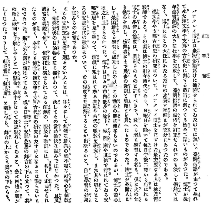 顏振聲談 1936年3月談 見於井川直衛著 《バアクレイの面影》台南 基督教真理社 p.172-175 日文