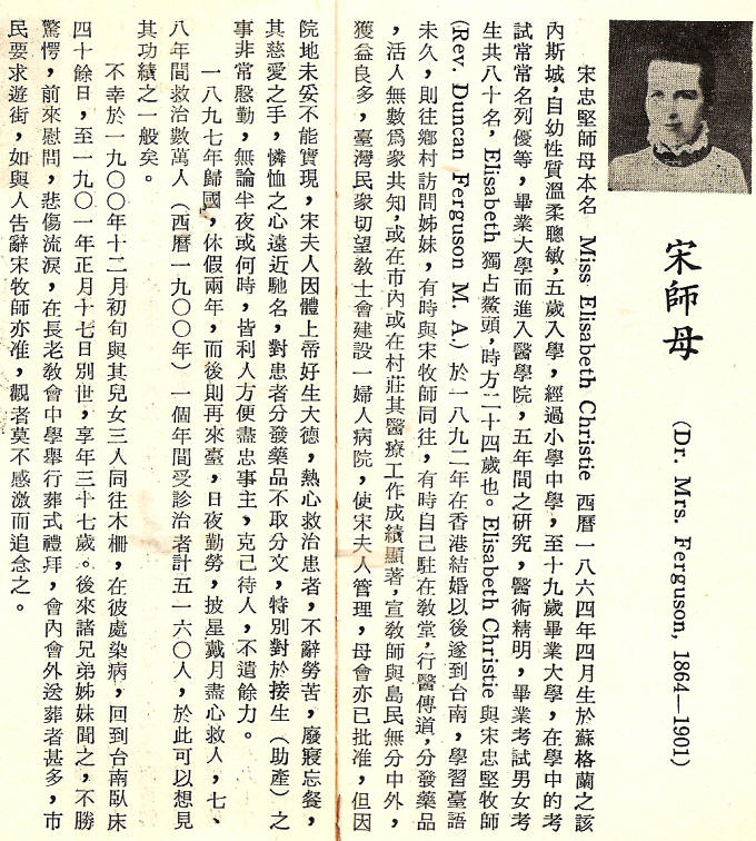 | 宋忠堅牧師娘 (Dr, Mrs., Ferguson, 1864-1901) | |