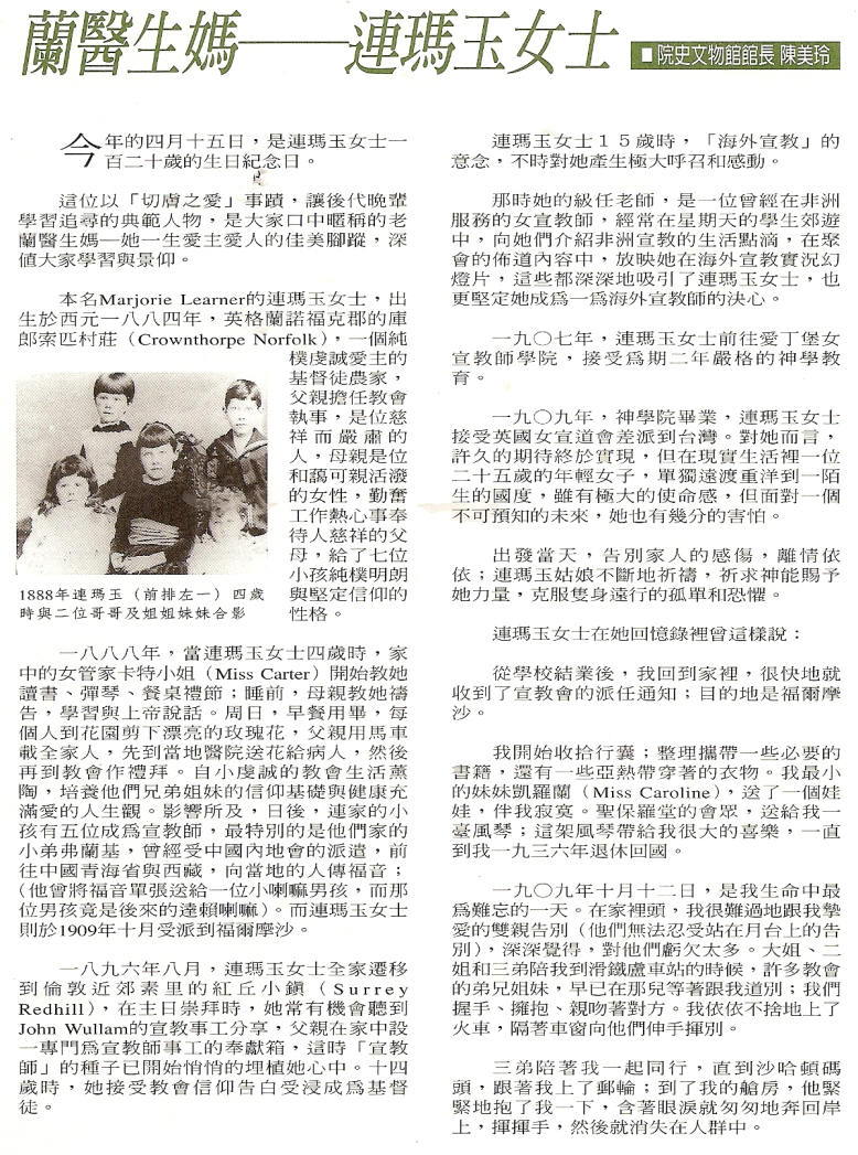蘭醫生媽──連瑪玉女士